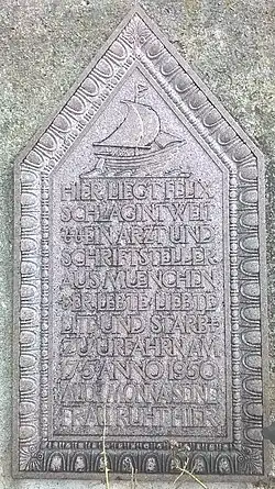 In einem Nachruf auf Felix Schlagintweit schrieb der Münchner Merkur am 22. Mai 1950: „Als der Sarg mit seinen sterblichen Überresten in dem schwarzen Kahn von Urfahrn nach der Fraueninsel hinüber gerudert wurde, leuchtete ein Regenbogen über dem See. Es war wie ein Symbol für das erfüllte Leben des Arztes und Schriftstellers, das sich in friedlicher Vollendung von der einen Jahrhundertmitte bis in die andere wölbte, nach dem schweren Gewitter des Zweiten Weltkriegs besonders vielfarbig und tröstlich erstrahlend.“