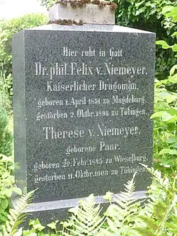 Felix Niemeyer, ab 1873 von Niemeyer, (geboren am 1. April 1851 in Magdeburg, Preußen; gestorben am 2. Oktober 1896 in Tübingen, Königreich Württemberg) war ein deutscher Diplomat.