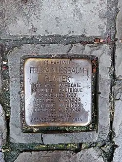 Ein Stolperstein erinnert in Brüssel, 22 rue Archimède, an Felka Platek und Felix Nussbaum.