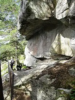 An der Felswand befinden sich auch zwei Löcher, fast übergroße Schälchen, es ist jedoch unsicher, ob sie artifiziell oder natürlich entstanden sind.