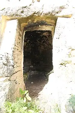 Das ungewöhnliche (nur etwa 50 Exemplare existieren) Felsengrab der Nuraghenkultur, das ähnlich wie Pesciarzos, Sa Figu und Sos Furrighesos mit einer architektonisch als Portalstele gestalteten Front, nach Art der Gigantengräber versehen ist, hat über der oben aufgewölbten Mitte noch die Aussparungen zur Aufnahme von drei Baityloi. Durch einen späteren Umbau ist die spezielle Architektur der älteren Felsgräber heute allerdings unkenntlich. Im Inneren entspricht der kleine, nahezu quadratische Raum mit den seitlichen Altarbänken einem der kleinen Tempel aus der Endphase der Nuraghenkultur, wie sie sich in einigen Nuraghensiedlungen finden.