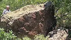 Der Felsblock hat eine Höhe von etwa 1,50 Metern und eine Breite von 2,50 Metern. Auf der nach Nordwesten gerichteten, ungeglätteten Seitenfläche sind vier Zeilen und auf der Oberfläche eine weitere Zeile einer Inschrift eingeritzt. Die seitliche Schrift ist relativ gut erhalten, während die dem Wetter mehr ausgesetzte Zeile auf der Oberfläche in schlechtem Zustand ist. Die Zeilen sind bustrophedon zu lesen und durch geritzte Linien getrennt. Der Text beginnt mit der Vorstellung des Verfassers: