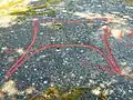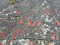 Die beiden bronzezeitlichen Felsbilderkomplexe zeigen abstrakt abgebildete Menschen, Tiere und Symbole. Darunter Fußabdrücke, Kreise, Räder, Ringe, Schiffe, Spiralen und undefinierbare Bilder sowie Interaktionen zwischen den dargestellten Gruppen. Damit entsprechen sie weitgehend dem Spektrum der bronzezeitlichen Felsritzungen in der Südhälfte Schwedens.