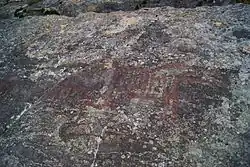 Sie wurden 1984 von Archäologiestudenten entdeckt. Die 55 Felsritzungen der Jäger und Sammler stammen etwa aus der Zeit zwischen 3000 und 2000 v. Chr. und stellen zumeist Boote, Elche (25) und Menschen dar. Viele Elche wurden in der sogenannten Röntgenperspektive dargestellt, die zusätzlich zur Kontur die Rippen und eine „Lebensader“ vom Maul zum Herzen zeigt. Ähnliche Figuren hat man in den Nämforsen-Stromschnellen im Fluss Ångermanälv gefunden. Der Fundort war um 3500 v. Chr. eine Insel in einer Meeresbucht und lag zuvor unter dem Meeresspiegel. Die Ritzungen bei Norrfors sind einer von neun Orten mit Petroglyphen in Norrland, die am oder im Wasser liegen. Daneben gibt es Orte mit gemalten Felsbildern auf fast senkrechten überhängenden Felswänden.