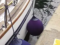 Auf Motor- oder Segelyachten werden in der Regel kugel- oder tonnenförmige, mit Druckluft gefüllte Kunststoffkörper verwendet. Bei seitlicher Positionierung werden die Fender bei Segelyachten an deren Reling befestigt. Als Befestigungsknoten werden meist der Rundtörn mit zwei halben Schlägen oder der gesteckte Webeleinenstek auf Slip verwendet. Auf Yachten gilt es als unfein, Fender während der Fahrt außenbords hängen zu lassen.