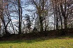 Ein Hohlweg durchschneidet den Wall der Fentbachschanze. -