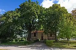 - Vor der Kirche befindet sich die Friedenseiche von 1871.
