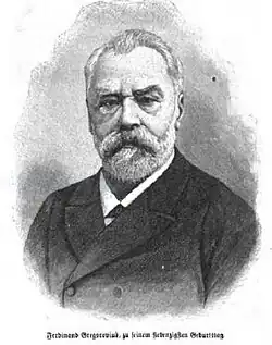 - ↑ Karl Krumbacher: Ferdinand Gregorovius. Brockhaus, Leipzig 1891.