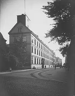 Altes Regierungsgebäude an der Mühlenstraße mit Sternwarte in Düsseldorf; Foto Erwin Quedenfeldt, 1911