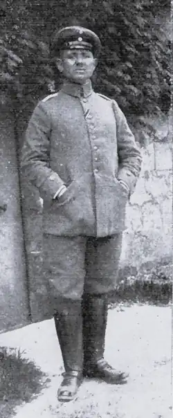 Kurze Zeit nach der Mobilmachung wurde er einberufen und der Ersatz-Abteilung eines Feld-Artillerie-Regiments zugewiesen. Im September 1914 rückte er als Offiziersstellvertreter ins Feld und wurde bald zum Leutnant der Reserve befördert. Nach mehreren Gefechten an der Westfront wurde er mit dem Eisernen Kreuz ausgezeichnet. In den Kämpfen am 6. Juni 1915 bei Moulin-sous-Touvent wurde er schwer verwundet und geriet in französische Gefangenschaft. Wenige Stunden später erlag er seinen Verwundungen im feindlichen Schützengraben.[7]