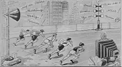 Die weltweit erste Fernsehübertragung mittels rein elektronischer Bildzerlegung und -wiedergabe und zeilenweiser Abtastung über eine Photozelle und Wiedergabe auf einer Kathodenstrahlröhre gelang Manfred von Ardenne am 14. Dezember 1930 in seinem Lichterfelder Laboratorium.[26] Zur Funkausstellung in Berlin führte er ab dem 21. August 1931[27] das erste voll elektronische Fernsehen vor, das für lange Zeit die Zukunft des Fernsehens bestimmen sollte.