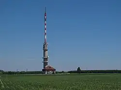 Der Fernsehturm Hegyhátsál [] ist ein Sendeturm für UKW-Rundfunk und TV in der Nähe der ungarischen Gemeinde Hegyhátsál im Komitat Vas. Der Turm wurde gegen Ende der 1980er-Jahre erbaut, sein Mastfuß befindet sich in 248 m Höhe. Seine Bauweise ist recht ungewöhnlich, er besteht aus einem Stahlbetonturm als Unterbau, auf dem sich ein am Erdboden abgespannter Rohrmast befindet. Eine solche Konstruktion, die sich aus der Kombination zweier unterschiedlicher Bauweisen ergibt, wird als Hybridturm bezeichnet[1][2]. Sie wird insbesondere bei Windkraftanlagen verwendet. Hierdurch werden größere Höhen möglich (mit mehr Windertrag), ohne durch den dann zwangsläufig auch ansteigenden Durchmesser der Stahlröhre deren Transportfähigkeit zu gefährden.