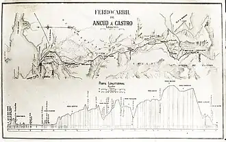 1905 gab der chilenische Kongress die ersten Studien in Auftrag und 1907 erhielt das französisch-belgische Konsortium Societe Chemin de Fer du Chili den Auftrag zu einer Detailstudie.[2] Die Arbeiten an diesem Projekt begannen schließlich am 6. Februar 1909 mit einem Festakt im zukünftigen Bahnhof Ancud.[3] Der Bau dauerte drei Jahre und die Bahn wurde schließlich am 2. April 1912 eingeweiht. Das Netz bestand aus der 88,4 Kilometer langen Strecke zwischen Ancud und Castro und der 8,4 Kilometer langen Zweigstrecke Ancud–Lechagua.[3] Der fahrplanmäßige Betrieb begann am 27. Juli 1912.