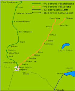 Die Società Anonima per la Ferrovia Elettrica di Valle Brembana (FVB) betrieb eine normalspurige Bahnstrecke in der italienischen Region Lombardei.