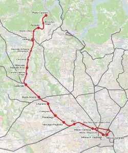 - den Abschnitt Mailand–Gallarate der Bahnstrecke Domodossola–Milano;