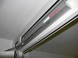 - mindestens einem Handauslösetaster zum manuellen Schließen (dieser kann nur dann entfallen, wenn die Feststellung auch durch geringen Druck auf das Türblatt aufgehoben werden kann).