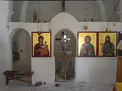 Mit Ausnahme von zwei Kirchen sowie einigen Zisternen sind im Inneren keine weiteren Bauwerke erhalten geblieben. In der einschiffigen Kapelle Agios Nikolaos (Άγιος Νικόλαος) mit einer Apsis an der Ostseite sind Fresken aus dem 15. und 16. Jahrhundert teilweise erhalten. Vermutlich wurde die Steinplatte über dem Eingang mit drei Wappen u. a. des Großmeisters del Carretto und der Jahreszahl 1520 nachträglich angebracht. Die ebenfalls einschiffige Kirche Agia Paraskevi (Αγία Παρασκευή) wurde im Jahr 1705 erbaut. Von der Kirche Panagia Eleimonitrias (Παναγία της Ελεημονήτριας) sind lediglich Ruinen erhalten. Während der osmanischen Zeit existierte eine Moschee.