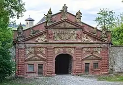 - Vorburg: Dreiflügelanlage mit Echter-Bastei, um 1600;