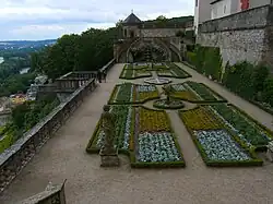 Der Fürstengarten ist eine Aussichtskanzel mit Garten am östlichen Ende der Festung auf einer ehemaligen Geschützplattform. Er wurde von 1650 bis 1700 im Stil der verborgenen Renaissancegärten Italiens („giardini secreti“) von Kurfürst Johann Philipp von Schönborn errichtet. Er ist vom innersten Burghof neben der Festungskirche aus zu erreichen. Er ist geometrisch angeordnet mit Brunnen, Beeten und Pavillons.[54]