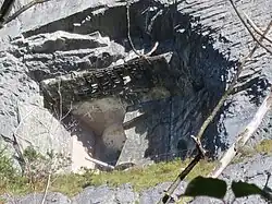 Bergstation, vor dem Felsabbruch Haupteingang zum Werk