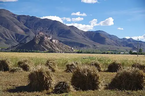 Die Bergfestung geht auf das 9. Jahrhundert zurück. Im 14. Jahrhundert wurde unweit der Festung das Kloster Pelkhor (auch: Pelkor, Palcho etc.; Tibetisch: dpal 'khor) gebaut.