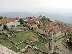 - Überreste von Kirchen wurden im Südwesten und im Nordosten gefunden. Die Kapelle im Südwesten stammt aus dem 9. Jahrhundert. Sie liegt östlich der Tekke. Die Kirche im oberen Teil der Burg hinter dem großen Turm, den die Archäologen als Akropolis bezeichnen, wurde wohl in der ersten Hälfte des 15. Jahrhunderts gebaut. Gleich daneben wurden noch die Ruinen einer kleinen Kapelle gefunden, die aus dem 12. Jahrhundert stammen dürfte.[10][3]