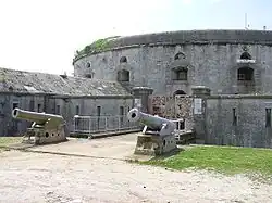 Festungsgeschütze des Fort Bourgignon in Pula. Ursprünglich mit Blocklafetten ausgestattet.
