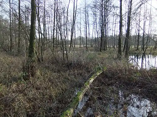 Das Schutzgebiet befindet sich innerhalb einer vorrangig von alten Waldkiefern bestandenen Waldfläche. Am Boden findet sich eine vorwiegend von Brombeeren bestandene Krautschicht. Zu den weiteren Arten gehören Faulbaum, Vogelbeere, Himbeere, Roteiche und Spätblühende Traubenkirsche. Südlich der Fläche schließen sich mehrere Teiche an, die bereits auf Gütersloher Gebiet liegen und nicht offizieller Teil des Schutzgebietes sind. Sie bilden mit den Feuchtwiesen Röhrmann, die als Pufferzone zwischen Waldlebensraum und Feuchtbiotopen fungieren, jedoch einen Biotopverbund.[1]
