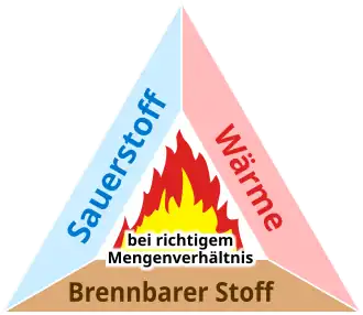 Zur Entfachung bzw. Aufrechterhaltung eines Feuers werden allgemein ein brennbarer Stoff, ein Oxidationsmittel und Zündenergie (Wärme, mechanische Funken, Elektrizität) benötigt. Dieser Zusammenhang kann in einem Verbrennungsdreieck anschaulich dargestellt werden. Mangelt es an einer der drei Komponenten, kann kein Feuer entstehen bzw. erlischt es. Dies kann man sich zur Brandbekämpfung zunutze machen.