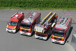 | Löschzug | Einsatzleitwagen, zwei Löschgruppenfahrzeuge (HLF 10 und LF 20), Drehleiter |