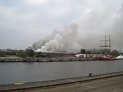 - 1993: Großfeuer in Papierlagerhalle am Konstinkai