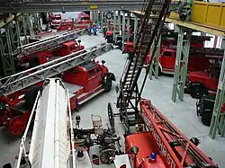 Im Erdgeschoss des insgesamt 2.700 m² umfassenden Museums werden in wechselnder Ausstellung knapp 30 motorisierte Feuerwehrfahrzeuge (Löschfahrzeuge, Drehleitern und Sonderfahrzeuge vor allem der Hersteller Magirus-Deutz, Mercedes-Benz und Opel) ausgestellt.