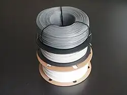 3D-Druck-Filament, kurz Filament, ist ein drahtförmiger Werkstoff, der als Ausgangsstoff für das Fused Deposition Modeling (FDM) in 3D-Druckern dient. Das Filament besteht typischerweise aus einem thermoplastischen Kunststoff, der in einem durchgängigen Strang auf einer Spule konfektioniert wird. Am weitesten verbreitet sind hierbei Filamente mit 1,75 mm und 2,85 mm Durchmesser sowie Spulen mit einer Nettofüllmenge von 0,5 bis 2 kg, wobei 1 kg die meiste Verbreitung findet. Kleinere Mengen in verschiedenen Farben werden oft als lose Bündel für 3D-Stifte angeboten. Das Angebot reicht von transparent bis vollständig opak in jeder erdenklichen Farbe, hergestellt aus unterschiedlichsten Materialien.[1][2]