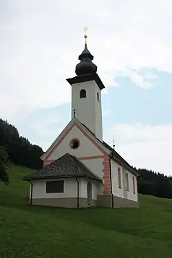 Die Kirche ist ein kleiner gotischer Bau mit eingezogenem Chor und westlicher Vorhalle. Der gemauerte westliche Dachreiter wird von einem barocken Zwiebelhelm mit Laterne bekrönt. Die Glocke goss 1573 Georg Renner. Nördlich des Chores befindet sich die Sakristei mit zwei spätgotischen Fenstern. An der Südwand ist ein Christophorusfresko erhalten.