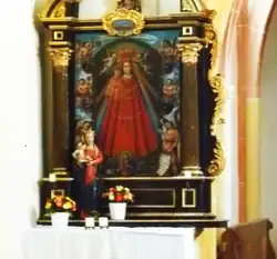 Auf die lange Siedlungstradition auf dem Kirchberg weist eine liegende Steinplatte mit dem Bild einer keltischen Dame in norisch-römischer Tracht hin, die an der Südost-Wand der Kirche angebracht ist.