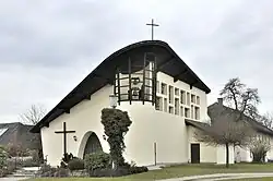 Ab Juli 1959 begann der Bau der neuen Kirche. Der heutige Sakralbau besitzt kleinere Ausmaße als sein Vorgänger. Ein Ausschnitt aus dem Reslfeld-Fresko wurde an der Mauer hinter dem Altar aufgetragen, die alte Marienstatue konnte ebenfalls wieder aufgestellt werden. Die Konsekration der Kirche leitete Abt Berthold Niedermoser am 4. Mai 1961. Eine 70 kg schwere „Florianiglocke“ versieht seit 1996 ihren Dienst.[3]