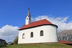 Der um 1800 errichtete, dreiachsige, spätbarocke Bau besitzt einen halbrunden Schluss und einen Dachreiter im Westen. Die Kompositbogenfenster wurden 1941/42 neu verglast. Betreten wird die Kirche durch ein Korbbogenportal im Westen. Im Westen des flachgedeckten Saals mit eingezogenem, flachem Triumphbogen steht eine Holzempore auf Holzsäulen. Die Wandmalereien stammen aus der Erbauungszeit (1800). An der mit Akanthusranken verzierten Decke im Langhaus ist der heilige Silvester und im Altarraum die Verkündigung an Maria zu sehen.