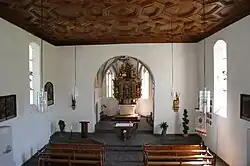 Der Hochaltar aus 1655 mit einem renaissanceartigen Aufbau mit zwei geraden weinlaubverzierten Säulen und geradem gekröpftem Gebälk hat seitliche Standflügel und einen flachen Auszug mit C-Schnörkeln, er zeigt das Altarbild Mariä Krönung um 1660 und trägt die Figuren der Heiligen Jakobus links, Rochus rechts, das Oberbild hl. Arbogast erweckt den toten Prinzen in Anwesenheit von König Dagobert, der Auszug trägt die Figuren der Heiligen Eligius links und Georg rechts, mittig Anna selbdritt, alle um 1670.
