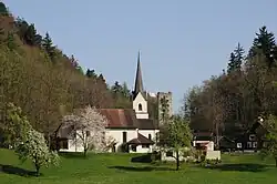 Urkundlich wurde 1473 ein Sankt Arbogast in der Klaus genannt. Die Kirche wurde um 1710 vergrößert und 1721 geweiht.