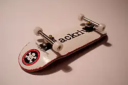 - Mehr oder minder originalgetreue Nachbildungen von Skateboards. Diese Fingerboards bestehen aus den verschiedensten Holzarten in mehreren Furnierschichten oder Hartplastik und sind, wie auch das originale Skateboard, mit echtem Griptape (eine Art Schleifpapier) oder Riptape (wird oft Moosgummi genannt, ist aber eine dünne Neoprenschicht mit klebender Unterseite) beklebt. Dadurch ist es möglich, echte Skateboardtricks mit den Fingern nachzumachen oder neue Kombinationen zu erfinden.