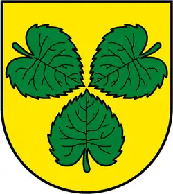 Blasonierung: „In Gold drei im Dreipass mit den Spitzen einander zugewandte grüne Lindenblätter.“[3]