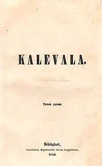Anfang der 1840er-Jahre befasste sich die Gesellschaft auch um den Aufbau einer eigenen Druckerei. Hierzu konnte der finnische Geschäftsmann Paavo Tikkanen (1823–1873) gewonnen werden, der gemeinsam mit dem Sprachwissenschaftler Herman Kellgren (1822–1856) 1849 eine Druckerei eröffnete.[26] Das erste Buch, das in dieser Druckerei die Presse verließ, war die Neuauflage des Kalevala, d. h. die heute kanonisierte 2. Auflage von 1849. Hierbei wurde erstmals anstelle der bis dahin üblichen Fraktur die Antiqua verwendet.