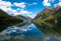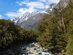Fiordland ist eine geographische Region im Südwesten der Südinsel von Neuseeland. Die Region umfasst eine Naturlandschaft, die von bis zu 2723 m hohen, zum Teil steil ansteigenden Bergen, tief ins Land einschneidenden Fjorden, zahlreichen Flüssen und Seen, ergiebigen Regenfällen, einem dichten Regenwald und einer fast unberührten und einzigartigen Natur gekennzeichnet ist.[1]