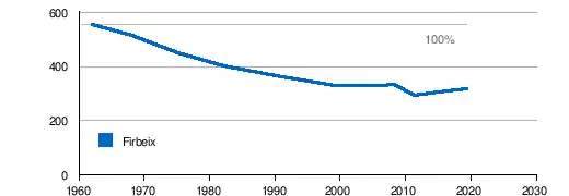 Die Einwohnerzahlen der Gemeinde Firbeix waren bis 2011 stark rückläufig, sie beginnen sich neuerdings aber wieder etwas zu erholen.