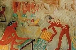 Um Fische länger haltbar zu machen, wurden sie vor allem mit Salz konserviert, das es in Ägypten an vielen Stellen gab. In Tempeln war eigens Personal nur zu dieser Arbeit abgestellt. Das ägyptische Wort für diese Arbeit war dasselbe wie für das Mumifizieren. Das Räuchern von Fischen war unbekannt, nicht zuletzt aufgrund der hohen Kosten für Holz. Außerdem ermöglichte das warme Klima in Ägypten mit dem Ausdörren einen einfacheren Weg der Konservierung.[29] Transportiert wurde der Fisch mit Transportseglern auf dem Nil, was sich vor allem bei begehrten Meeräschen lohnte. In der Spätzeit wurden im Nildelta in größeren Betrieben Pökelfisch produziert, der auch außerhalb Ägyptens ein begehrter Artikel war.[30]