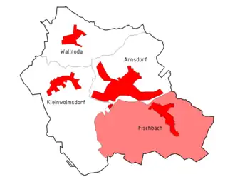 - Gemeinde Arnsdorf mit den Ortsteilen Fischbach, Kleinwolmsdorf und Wallroda