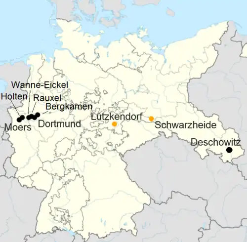 | Rauxel | Gewerkschaft Victor | Klöckner-Werke AG (52%) / Wintershall AG (48%) | 1937 | ND | Steinkohle | 40.000 |