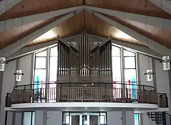 II/P | 24 | 3 Transmissionen; Ersatz für die Orgel, die 1997 mit der Kirche einem Brandanschlag zum Opfer fiel → Orgel → Orgel |