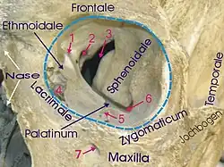 Bei den meisten Nichtprimaten wird die Öffnung zwischen den Keilbeinflügeln als Fissura orbitalis bezeichnet. Bei den Paarhufern verschmilzt sie mit dem Foramen rotundum zum Foramen orbitorotundum.