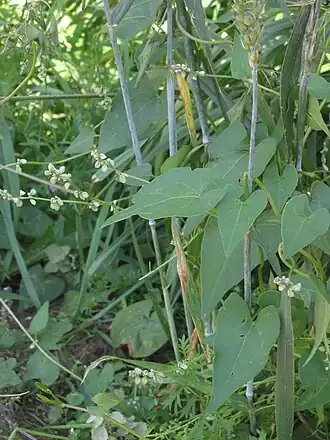 - Hecken-Windenknöterich (Fallopia dumetorum (L.) Holub, Syn.: Polygonum dumetorum L., Bilderdykia scandens (L.) Greene var. dumetorum (L.) Dumort., Polygonum scandens L. var. dumetorum (L.) Gleason, Reynoutria scandens (L.) Shinners var. dumetorum (L.) Shinners, Tiniaria dumetorum (L.) Opiz): Sie ist Eurasien und Nordafrika beheimatet. Sie ist besonders in Nordamerika ein Neophyt.